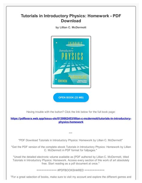 In order to read or download Tutorials In Introductory Physics Homework Answers Mcdermott Book Mediafile Free File Sharing ebook, you need to create a FREE account.